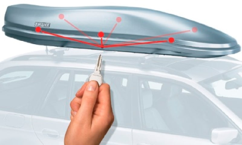 Бокс закрывается/открывается одновременно в нескольких местах одним поворотом ключа.
