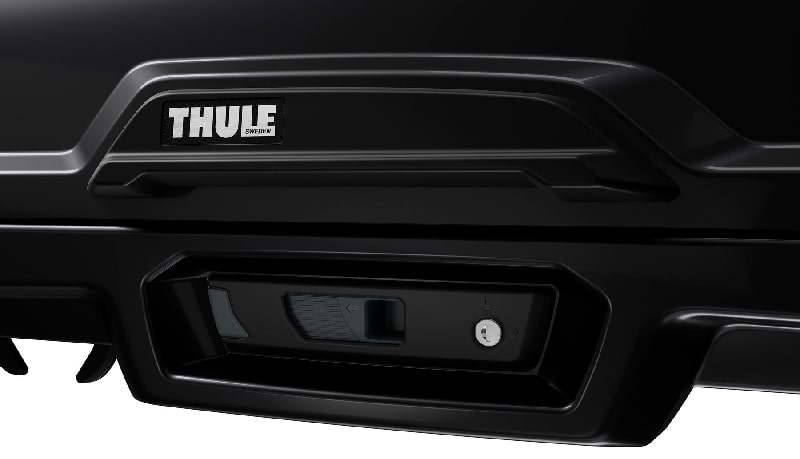 Система SlideLock с фуункцией сдвижной кнопки в сторону, сообщает о том, что бокс надежно закрыт. Автобокс багажник на крышу THULE Vector L 613700