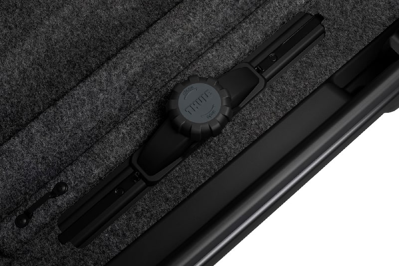 Система SlideLock с фуункцией сдвижной кнопки в сторону, сообщает о том, что бокс надежно закрыт. Автобокс багажник на крышу THULE Vector L 613701