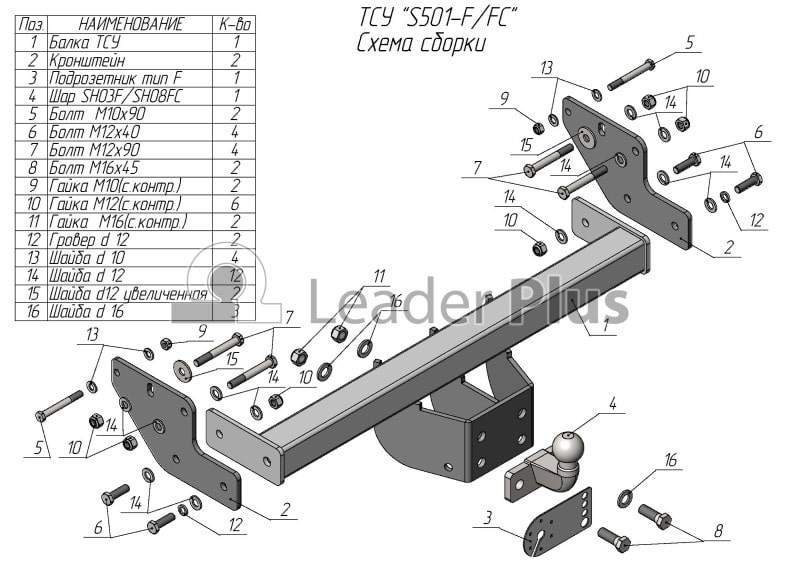 Фаркоп ЛИДЕР ПЛЮС S501-F для SOLLERS ATLANT L2