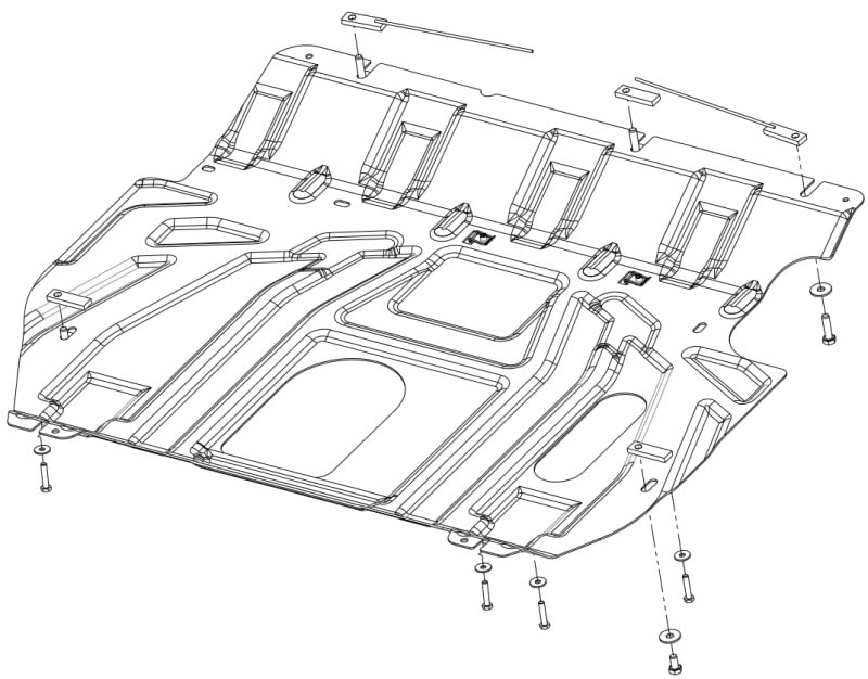 Разработка защит двигателя «Шериф» ведется с учетом индивидуальных конструктивных особенностей автомобиля, установка осуществляется только на штатные отверстия с использованием качественного крепежа.
