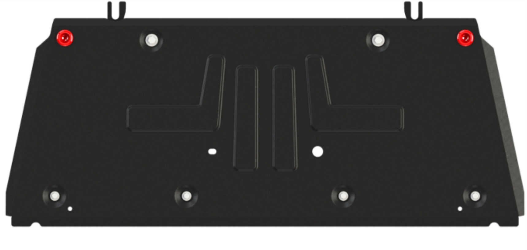 Конструкция защиты двигателя «Шериф» защищает моторный отсек от попадания влаги и грязи и предусматривает наличие металлических крыльев, которые выполняют функцию пыльника.