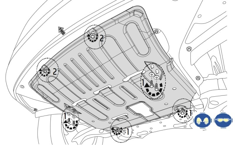 В местах контакта защиты с кузовом предусматриваются резиновые амортизаторы, которые сводят к минимуму шум и вибрацию при движении автомобиля.