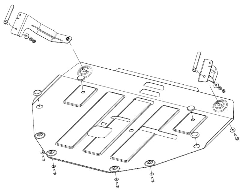 Разработка защит двигателя «Шериф» ведется с учетом индивидуальных конструктивных особенностей автомобиля, установка осуществляется только на штатные отверстия с использованием качественного крепежа.