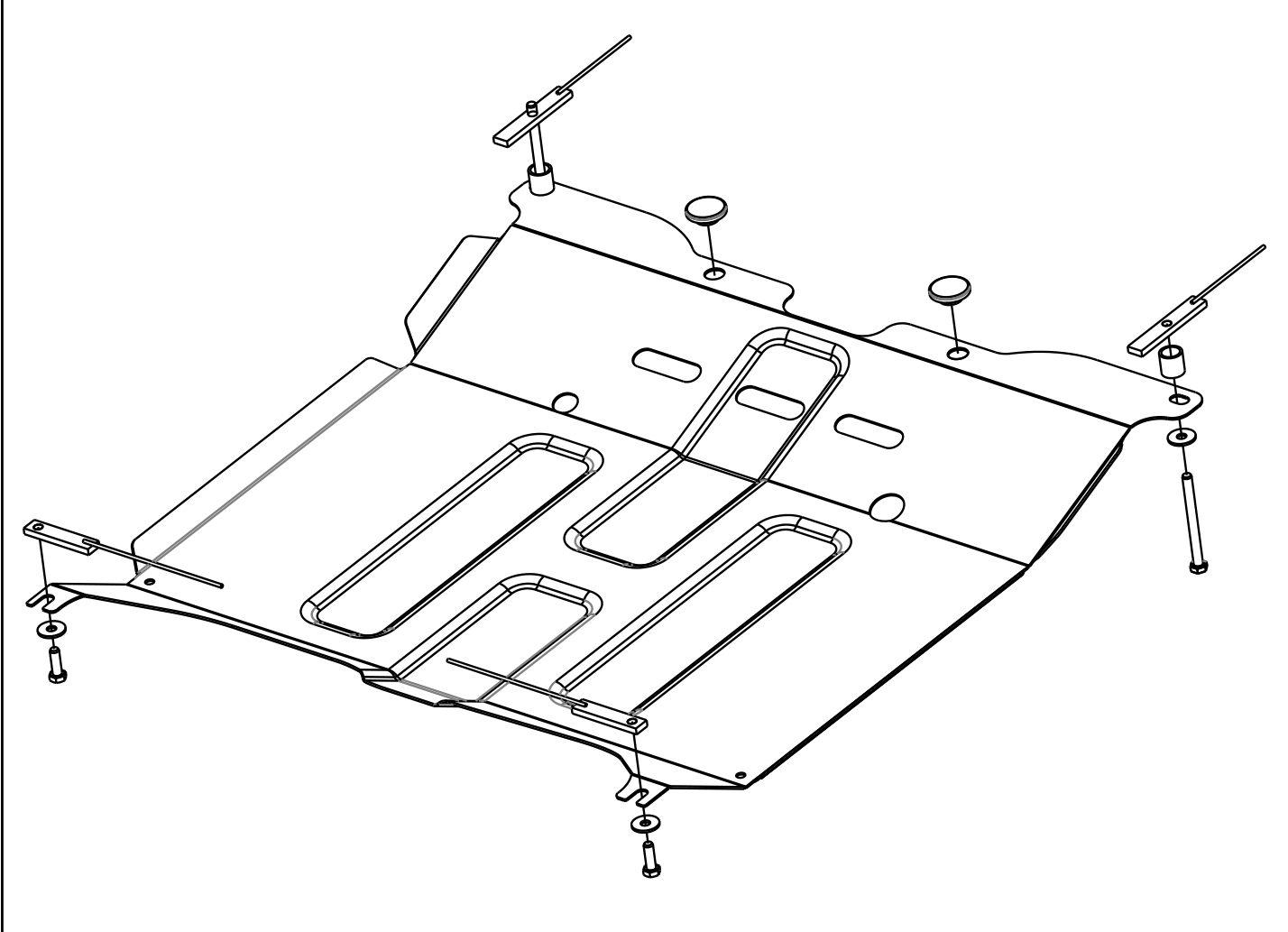 В местах контакта защиты с кузовом предусматриваются резиновые амортизаторы, которые сводят к минимуму шум и вибрацию при движении автомобиля.